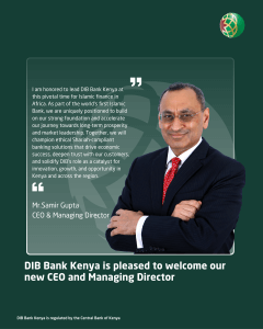 DIB Bank Kenya welcomes Mr. Samir Gupta as Chief Executive Officer & Managing Director – Leading with vision and purpose.